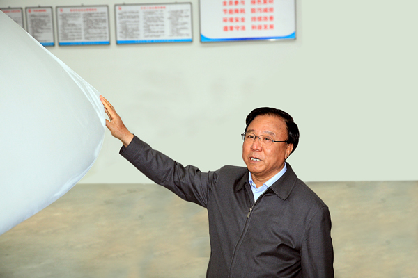 隨后,陸浩、徐守盛等各位領(lǐng)導(dǎo)和嘉賓相繼視察了包括中復(fù)、華銳、金風(fēng)科技的幾個(gè)酒泉產(chǎn)業(yè)化基地的風(fēng)電企業(yè)。在來到中國復(fù)材3兆瓦的葉片車間之后,陸浩認(rèn)真聽取了張定金的介紹匯報(bào),當(dāng)看到中復(fù)生產(chǎn)的3兆瓦葉片時(shí)非常高興,并與其他領(lǐng)導(dǎo)和嘉賓一起出席中復(fù)3.0MW風(fēng)力機(jī)葉片的投產(chǎn)儀式,中國復(fù)材副總經(jīng)理、中復(fù)連眾集團(tuán)董事長任桂芳、總經(jīng)理喬光輝陪同參觀。