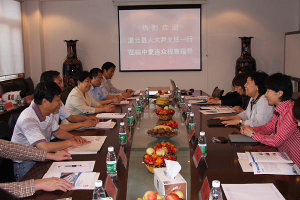 6月9日上午,灌云縣人大主任尹開芝率灌云縣人大代表團一行二十余人來中復連眾調研,連云港市人大副主任于麗華出席了調研活動。