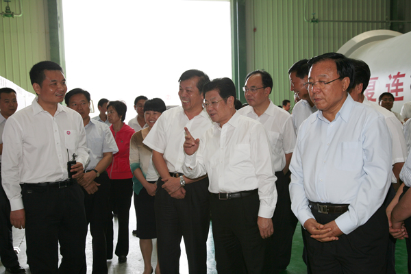 8月31日上午,中央政治局委員、全國(guó)人大常委會(huì)副委員長(zhǎng)王兆國(guó)在甘肅省委書(shū)記、甘肅省人大常委會(huì)主任陸浩陪同下蒞臨中復(fù)連眾(酒泉)公司視察。中國(guó)復(fù)材集團(tuán)公司董事長(zhǎng)、總經(jīng)理張定金、中復(fù)連眾集團(tuán)公司總經(jīng)理喬光輝匯報(bào)了相關(guān)情況。