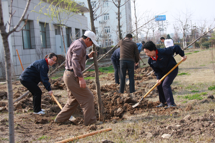 陽春三月,正是植樹綠化的最佳時節(jié)。4月7日,陽光格外明媚,在工會的號召下,中復連眾近百名干部職工參加共植“和諧之園”活動。任桂芳董事長帶頭揮鍬鏟土,栽下一棵棵小樹苗、種下一份份希望,共同為廠區(qū)播下一片新綠。