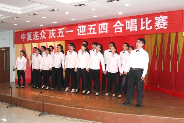4月30日,中復連眾“慶五一迎五四”合唱比賽拉開帷幕?;顒佑晒军h委、團委聯合舉辦,按照抽簽順序,6個支部輪番上陣,演唱了《年輕的朋友來相會》、《歌唱祖國》、《眾人劃槳開大船》、《真心英雄》等12首經典歌曲。經過激烈角逐,三支部憑借《大中國》、《光陰的故事》最后突圍,總得分96.5分,超過第二名0.2分,最終奪冠。