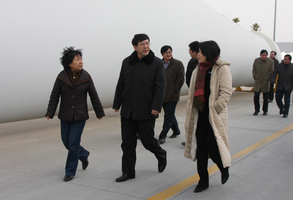 中國復(fù)材集團(tuán)副總經(jīng)理、中復(fù)連眾董事長任桂芳做情況介紹。任桂芳介紹說,大浦葉片工業(yè)園是目前全球單廠產(chǎn)量最高的葉片基地,年產(chǎn)能達(dá)1500套,在這里,曾成功生產(chǎn)了國內(nèi)第一只1.5MW風(fēng)力機(jī)葉片。經(jīng)過全體員工的不懈努力,中復(fù)連眾提前兩年完成年產(chǎn)萬只風(fēng)力機(jī)葉片戰(zhàn)略規(guī)劃,形成以連云港為中心,遼寧沈陽、甘肅酒泉、內(nèi)蒙古包頭為輻射點(diǎn)的葉片生產(chǎn)網(wǎng)絡(luò)。2009年,公司連續(xù)成功生產(chǎn)了超過5000只兆瓦級風(fēng)力機(jī)葉片,為華銳風(fēng)電、金風(fēng)科技、上海電氣、東方汽輪機(jī)、湘電等大型整機(jī)商提供了質(zhì)量穩(wěn)定的一流產(chǎn)品。任桂芳表示,科技創(chuàng)新為規(guī)?;a(chǎn)提高強(qiáng)力有的支撐。作為中復(fù)連眾的研發(fā)和培訓(xùn)中心,德國全資子公司SINOI為公司的快速發(fā)展做出重要貢獻(xiàn),中復(fù)連眾目前可以生產(chǎn)6個(gè)系列近20個(gè)品種風(fēng)力機(jī)葉片。