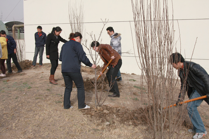 陽春三月,正是植樹綠化的最佳時節(jié)。4月7日,陽光格外明媚,在工會的號召下,中復連眾近百名干部職工參加共植“和諧之園”活動。任桂芳董事長帶頭揮鍬鏟土,栽下一棵棵小樹苗、種下一份份希望,共同為廠區(qū)播下一片新綠。