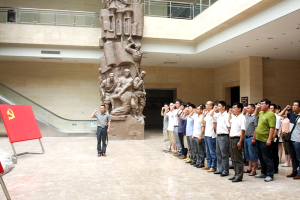 組織50名黨員代表參觀連云港市革命紀(jì)念館參觀和博物館,緬懷革命先烈,接受愛國(guó)主義教育。黨員們重點(diǎn)參觀了“連云港市革命斗爭(zhēng)史”展廳,參觀從五四運(yùn)動(dòng)時(shí)期至新中國(guó)成立時(shí)期的珍貴歷史圖片和革命文物,全面了解了連云港的人民群眾在共產(chǎn)黨的領(lǐng)導(dǎo)下抵御外侵、保家衛(wèi)國(guó)的光輝歷史。在鮮艷的黨旗前,公司黨委委員、副總經(jīng)理王彤兵同志帶領(lǐng)新黨員宣誓,對(duì)黨忠誠(chéng),積極工作,為共產(chǎn)主義事業(yè)奮斗終身。老黨員們也紛紛舉起拳頭,重溫入黨誓詞。