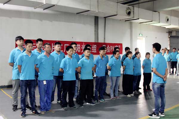 6月16日,晨會(huì)決賽現(xiàn)場,5個(gè)參賽班組的員工穿著統(tǒng)一的工作服,每個(gè)人都是精神飽滿,喊著班組口號,充滿了斗志和干勁。晨會(huì)雖然只有短短十分鐘的時(shí)間,但是內(nèi)容卻很豐富,總結(jié)前一天的工作,指出不足,表揚(yáng)優(yōu)秀員工,同時(shí)針對生產(chǎn)計(jì)劃、效率、質(zhì)量、安全、成本、現(xiàn)場環(huán)境等工作中應(yīng)該注意的重點(diǎn)事項(xiàng)做出要求和說明,最后布置當(dāng)天生產(chǎn)任務(wù)。評委從會(huì)議組織、儀容儀表、隊(duì)列隊(duì)形、晨會(huì)內(nèi)容、時(shí)間把握等五個(gè)方面為每個(gè)班組打分。