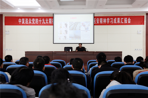 11月25日,中復(fù)連眾舉行黨的十九大精神專題輔導(dǎo)暨井岡山精神、延安精神學(xué)習(xí)成果匯報會,把學(xué)習(xí)十九大精神與弘揚(yáng)革命精神結(jié)合起來,教育和引導(dǎo)黨員干部堅(jiān)定理想信念,牢記宗旨使命。公司黨委書記、總經(jīng)理喬光輝,黨委副書記、紀(jì)委書記王彤兵,財務(wù)總監(jiān)張小平及在連黨員、積極分子、發(fā)展對象100余人參加會議。