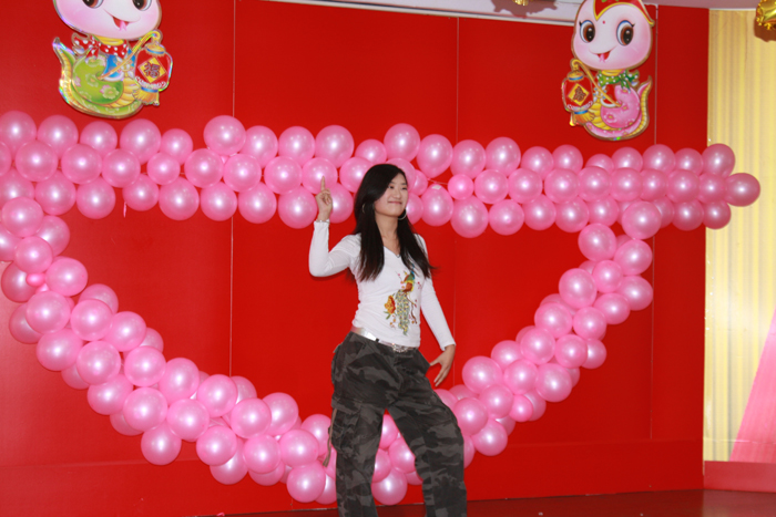 聯(lián)歡會(huì)在管罐營(yíng)銷部范賢浩MJ獨(dú)舞《DANGEROUS》中精彩開幕,掀起一個(gè)小高潮;信息管理部周福超一曲《青花瓷》委婉動(dòng)聽,帶我們感受中國(guó)風(fēng)的魅力;范賢浩和信息部張哲寧踏著《Dreams come true》的節(jié)奏,給觀眾不一樣的精彩;管罐營(yíng)銷部陳冠升傾情演繹了劉歡《我和你》、楊坤《無(wú)所謂》和汪峰《我愛你中國(guó)》經(jīng)典歌曲,模仿精彩到位、惟妙惟肖。贏得全場(chǎng)最高分貝尖叫的當(dāng)屬財(cái)務(wù)部蘇茗茗,她的獨(dú)舞《十分鐘》,揮灑自如,酷勁十足,新一代 “舞后”應(yīng)運(yùn)而生;葉片營(yíng)銷部王睿妍、管罐國(guó)際部吳瑜和范賢浩分別帶來(lái)了德文歌曲《即使在雨中》、俄文歌曲《喀秋莎》和韓文歌曲《大長(zhǎng)今主題曲》,讓我們感嘆中復(fù)連眾真是藏龍臥虎地;功夫不負(fù)有心人,經(jīng)過(guò)一個(gè)多月的辛苦排練,黃偉、潘慧等六位美女的舞蹈《SMILE》,終于贏得了陣陣喝彩;郭偉、孫誠(chéng)的歌曲《溫柔》,配合默契,唱功一流;由李成威、劉世民、譚倩倩、張丹表演的《拜年》講述了一對(duì)小夫妻回家拜年的爆笑經(jīng)歷,笑料十足;聯(lián)歡會(huì)在《恭喜發(fā)財(cái)》中落下帷幕。