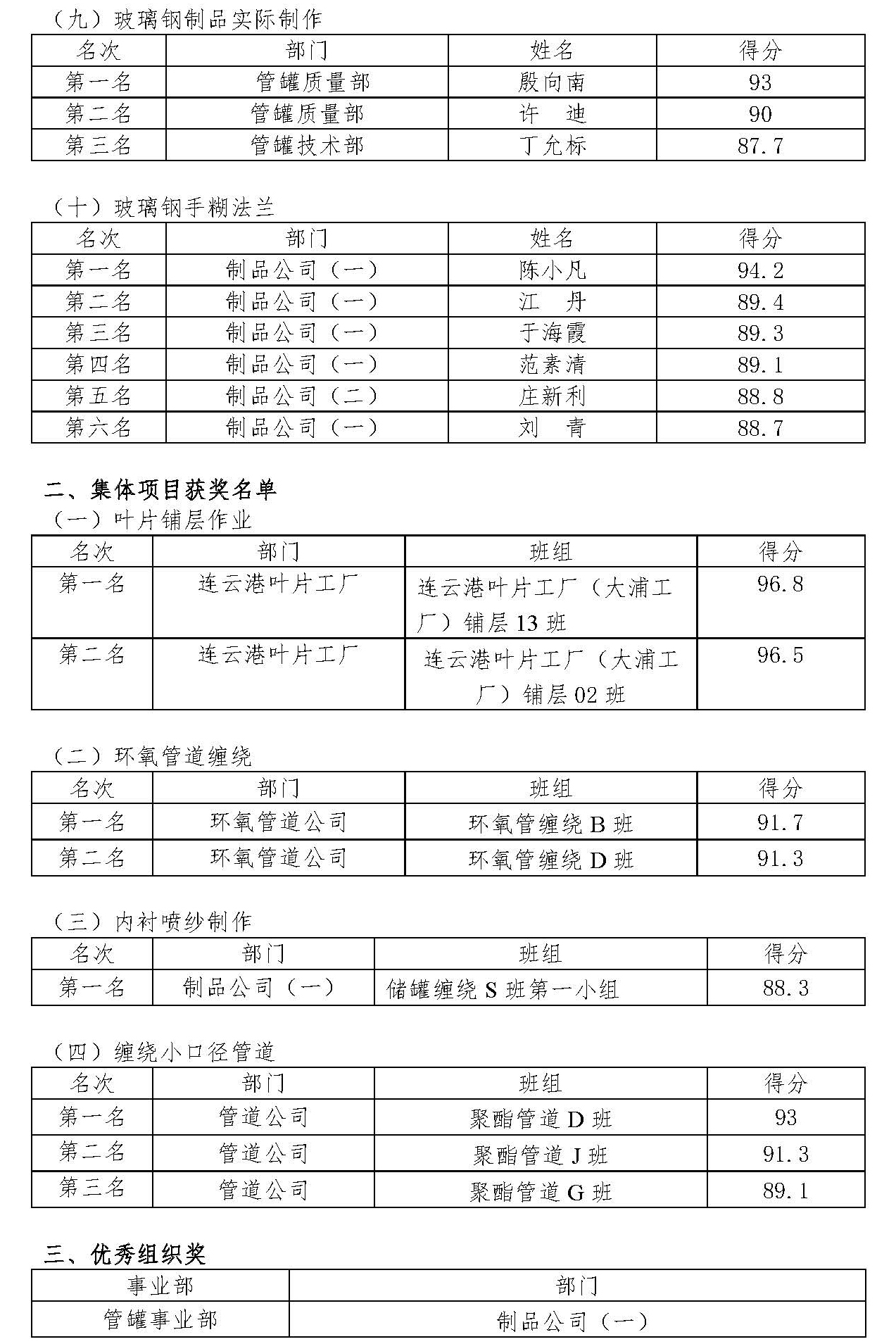 一是特色活動有創(chuàng)新。公司今年積極爭取并成功承辦了全市玻璃鋼制品工職業(yè)技能競賽項目——玻璃鋼手糊法蘭項目和纏繞小口徑管道項目。作為連云港市級一類職業(yè)技能競賽項目,成績優(yōu)異者將被授予市級榮譽;作為中復連眾多年必辦的員工技能競賽項目,有助于強化玻璃鋼制品高技能職工隊伍建設;此次競賽項目按照市級技能競賽一類標準籌辦,在豐富辦賽內(nèi)涵的同時,也積累了辦賽經(jīng)驗,為今后競賽活動和生產(chǎn)活動高度契合打下基礎。